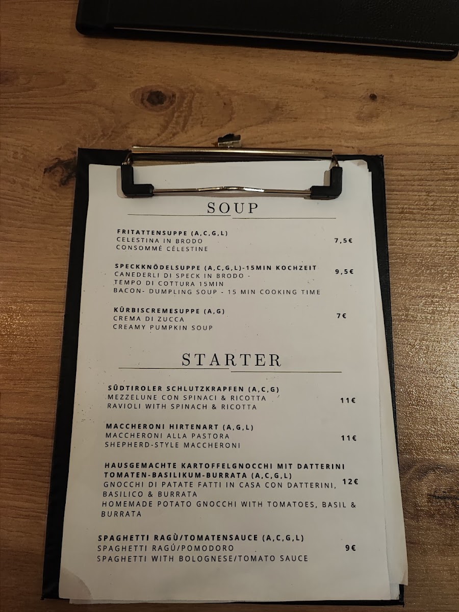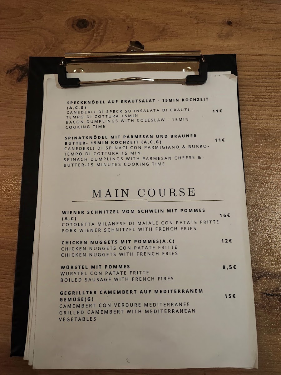Highlights include flavorful focaccia and housemade gnocchi served with fresh tomatoes and mozzarella, alongside heartier choices like canederli in brodo or würstl with crispy pommes frites. These dishes pair well with the inviting atmosphere, where you can enjoy a moment of calm while savoring simple yet skillful cuisine.