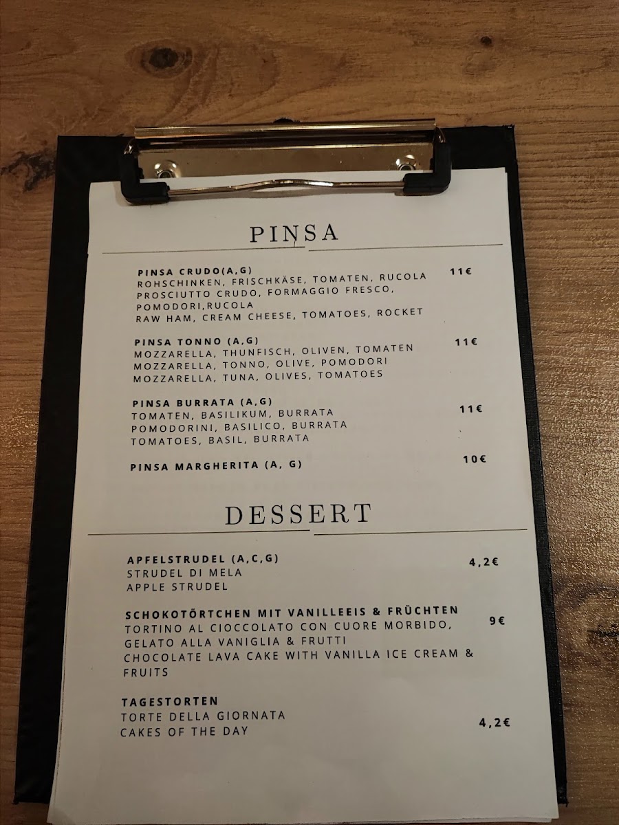 The menu at S Stodtplatzl offers a blend of comforting Italian dishes and casual bites, perfect for a relaxed meal in the heart of Vipiteno’s main square. Whether you're stopping by for a light lunch or settling in for a satisfying dinner, you'll find options that feel both familiar and thoughtfully prepared.